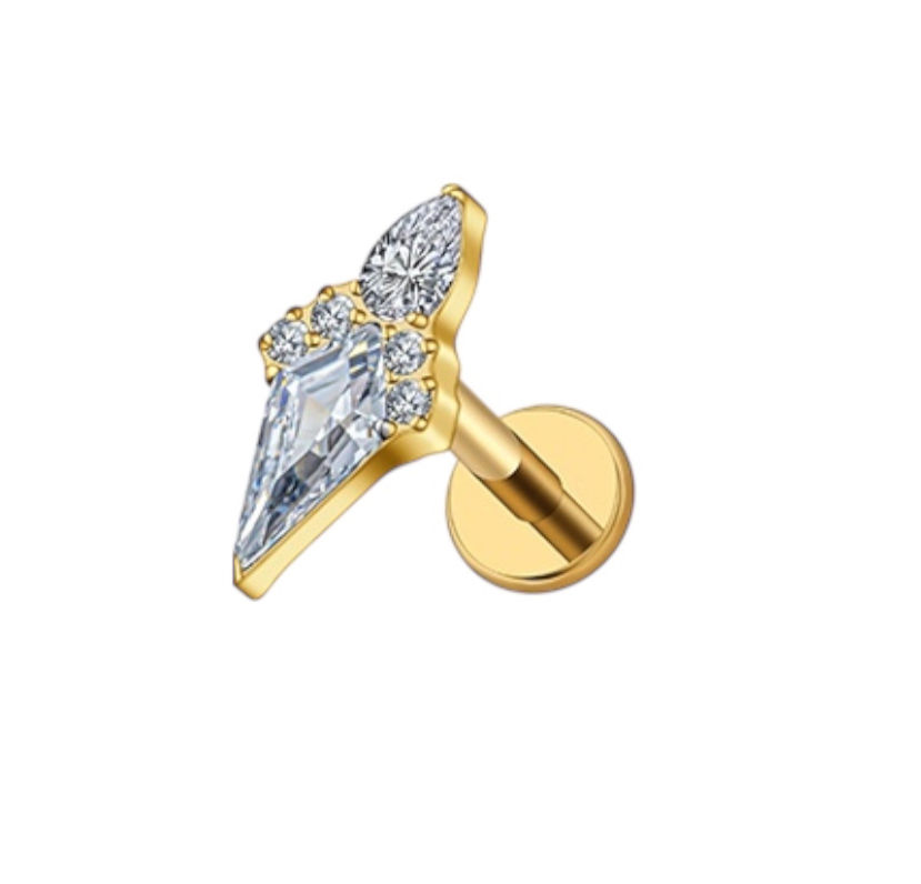 24KT Gold PVD Titanium 16G Internal Threaded Afterglow Rhombus Kite CZ